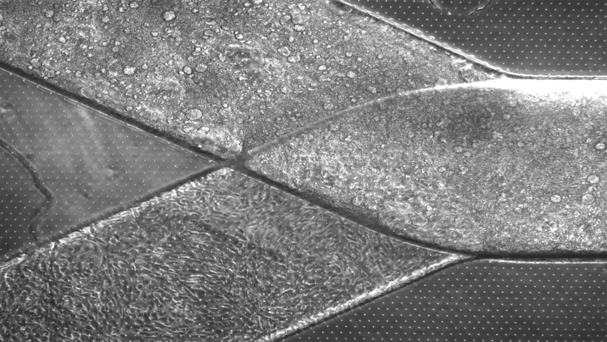 This video shows how researchers at Cedars-Sinai are bridging that gap through a heart-on-a-chip—a fusion of silicone and human cells designed to mimic the heart’s mechanics. Heart muscle cells, some of which were derived from the Allen Cell Collection, are “beating” in the chip’s top channel. Blood vessel cells line the channel below. Once they started to grow together on the chip, scientists put the cells through a “workout” — circulating fluid to mimic blood flow and rhythmically stretching the chip to simulate a heartbeat. This helped them grow and mature into cells resembling what is inside the human body.